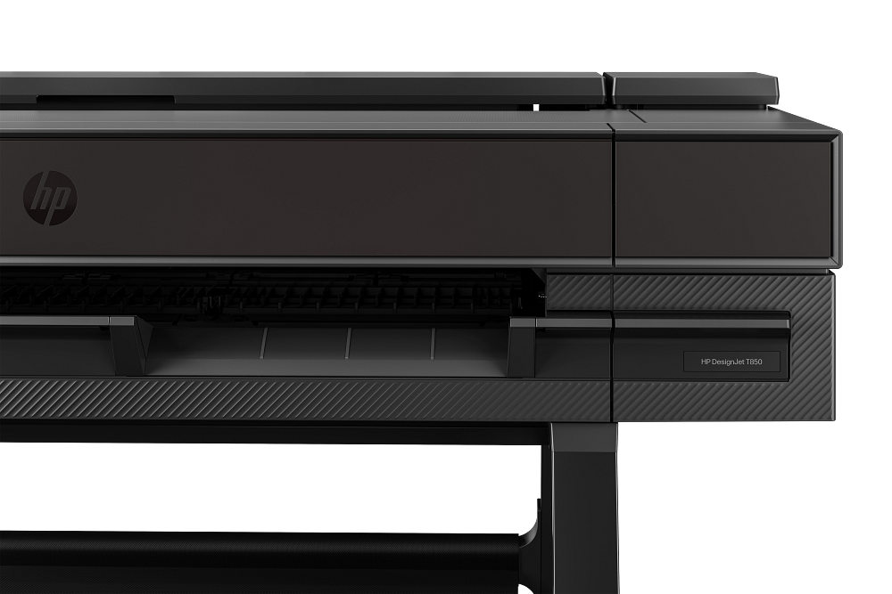 HP DesignJet T850 Printer, printhead, introductory ink cartridges, printer stand, spindle, guide, warranty flyer, power cord