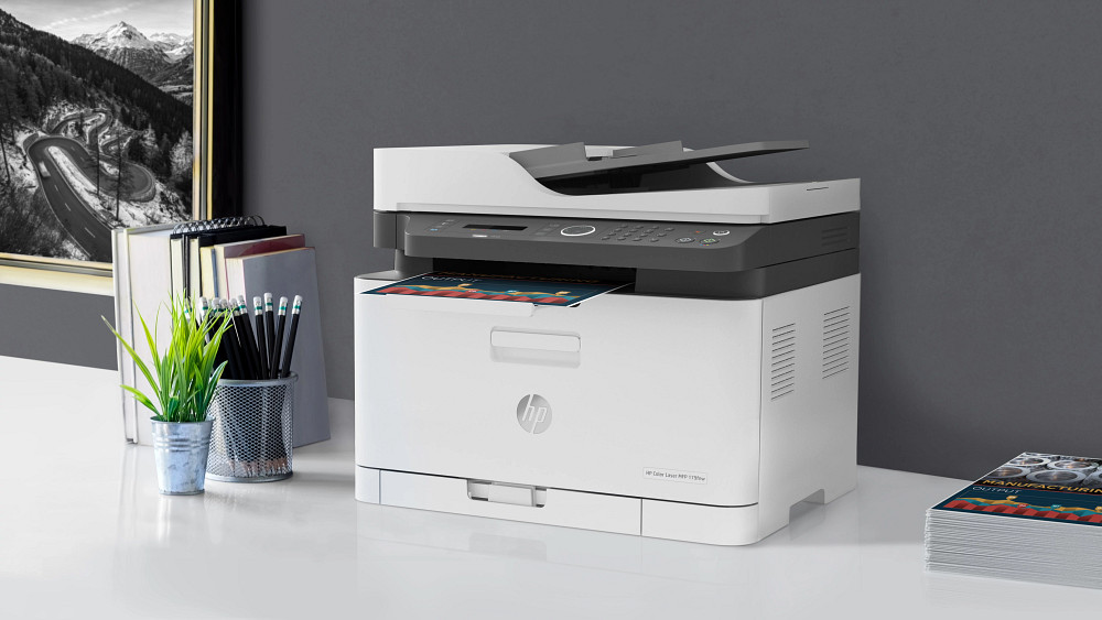 HP Color Laser MFP 179fnw; Előre telepített, induló HP Laser Printer fekete nyomtatókazetta (700 oldal); HP Laser Printer ciánkék nyomtatókazetta (500 oldal); HP Laser Printer sárga nyomtatókazetta (500 oldal); HP Laser Printer bíbor nyomtatókazetta (500 oldal); Képalkotó dob; Tonergyűjtő egység; Üzembehelyezési útmutató; Referencia-útmutató; Támogatási szórólap; Jótállási útmutató; CD-ROM nélkül; Tápkábel; USB-kábel; Telefonkábel