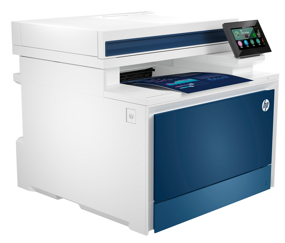 Fax; Automatikus lapadagoló; Automatikus kétoldalas nyomtatás; Felhőalapú flottakezelés; Kompakt méret; Újrahasznosított műanyagból készül; Hálózati nyomtatás; HP automatikus be- és kikapcsolás; TerraJet toner; PIN-kódos Private Print-nyomtatás; Professzionális nyomtatási minőség; Beolvasás felhőbe; Beolvasás e-mailbe; Beolvasás mappába; Érintőképernyő; Nyomtatás közvetlenül USB-ről; Wi-Fi Direct