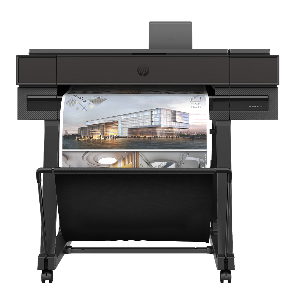 HP DesignJet T870 Printer, printhead, introductory ink cartridges, printer stand, spindle, guide, warranty flyer, power cord