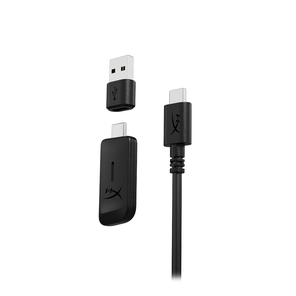 Vezeték nélküli gamer headset, leválasztható mikrofon, vezeték nélküli adapter, USB-C–USB-A átalakító, USB-C töltőkábel, gyorskalauz