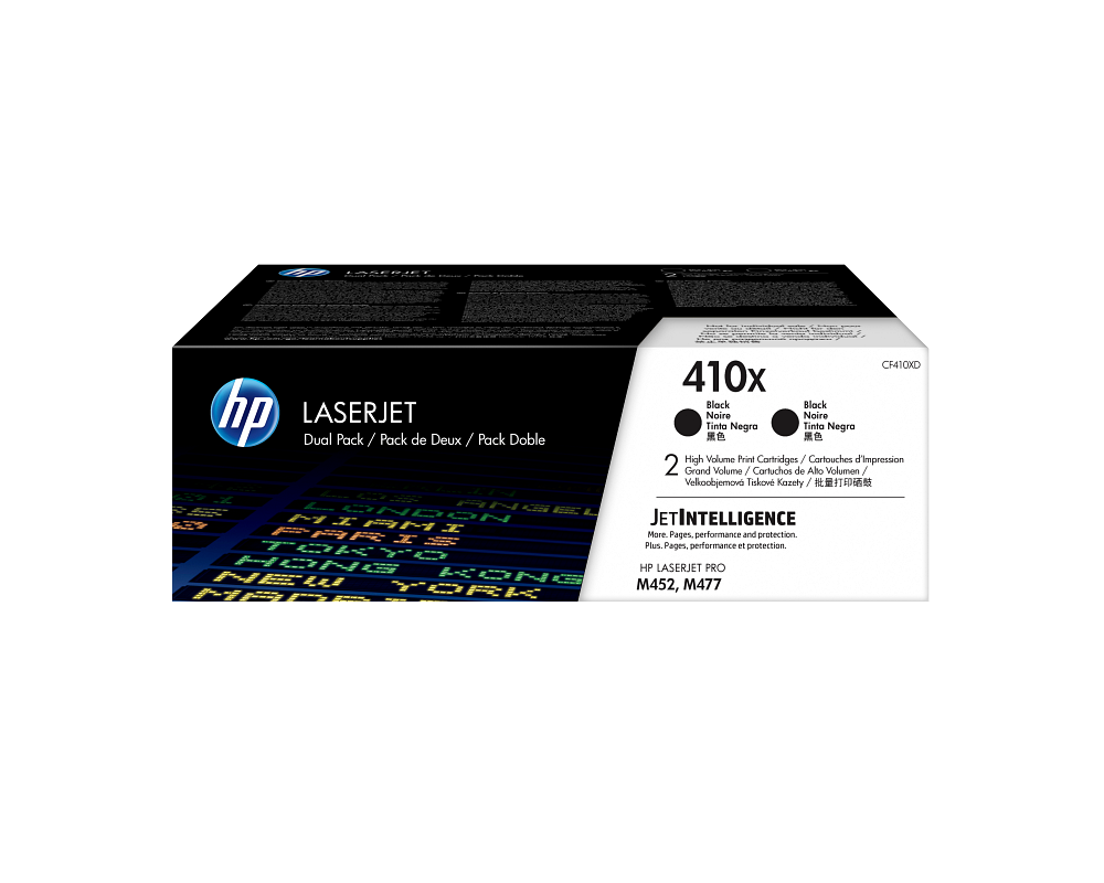 HP 410X CF410XD 2db nagy kapacitású fekete eredeti LaserJet M377 M452 M477 tonerkazetta (2*6500 old.) [CF410XD]